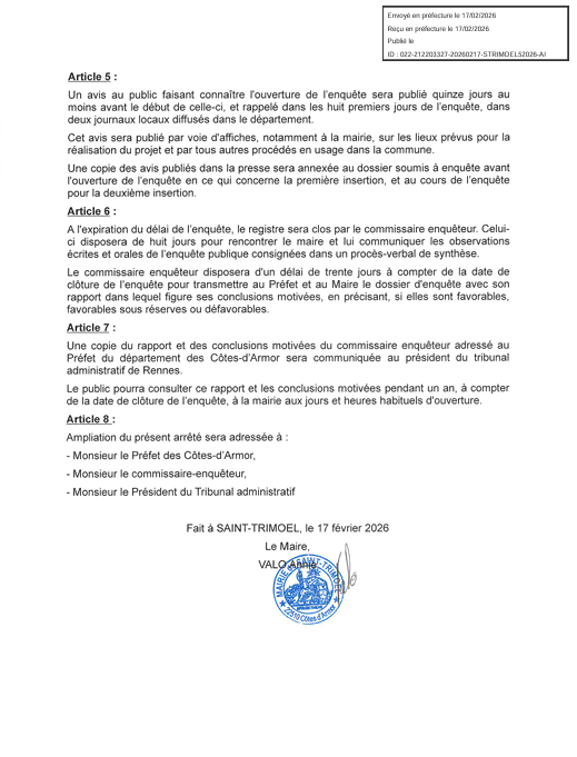 arrêté municipal du 17 février 2026
